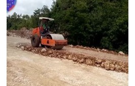 • 鋪路機將沙子運輸平攤,施工現場實拍